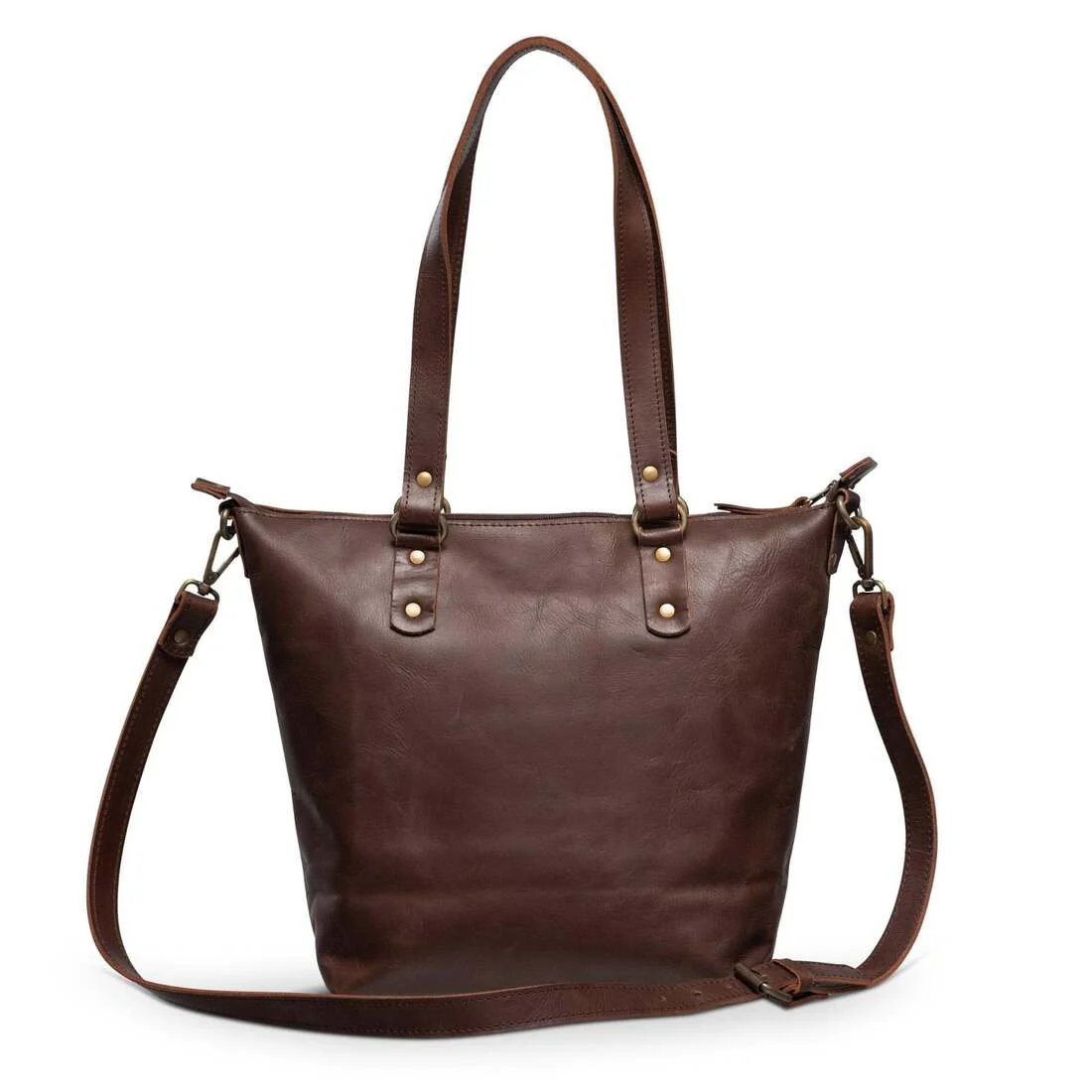 Crossbody Leather Tote - Saddle Dark