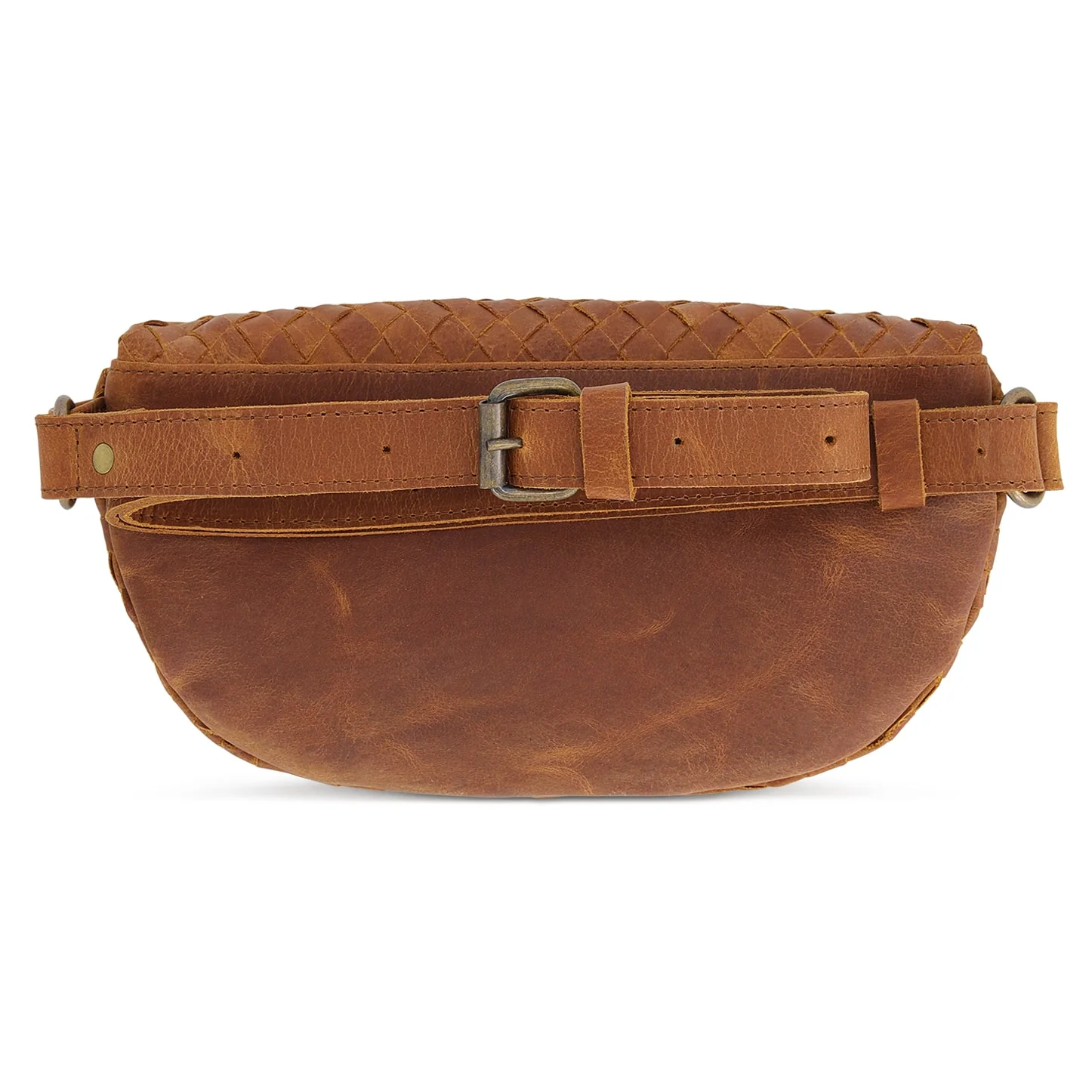 Nexus Woven Leather Belt Bag - Saddle Brown