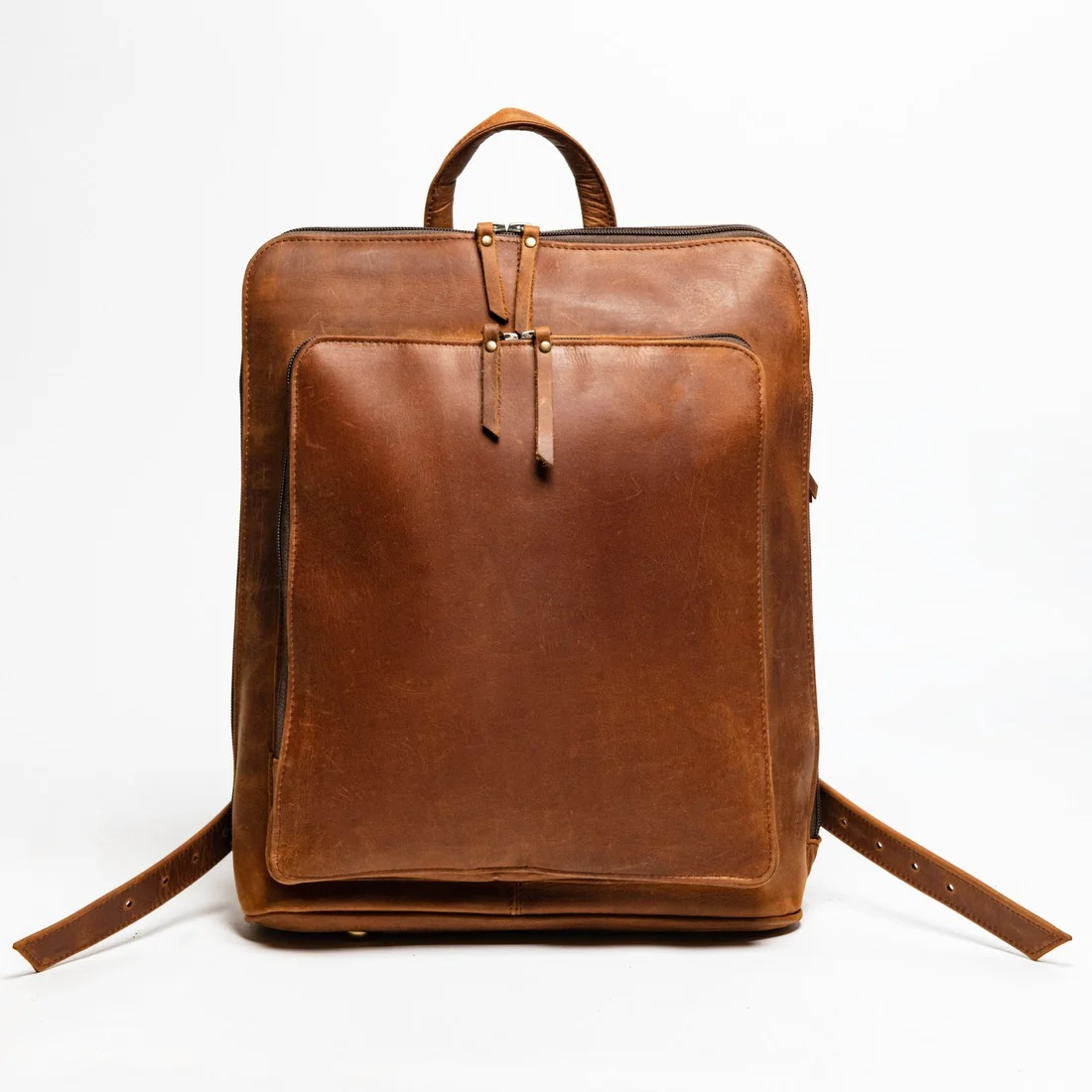 Tech Leather Backpack, available in three sizes, is made from high-quality, eco-friendly leather. It's perfect for students and professionals, with two main compartments and a padded spot for laptops up to 16 inches. It's durable, stylish, and has lots of pockets for your stuff. Plus, its expandable opening design makes it super convenient! Great for everyday use!